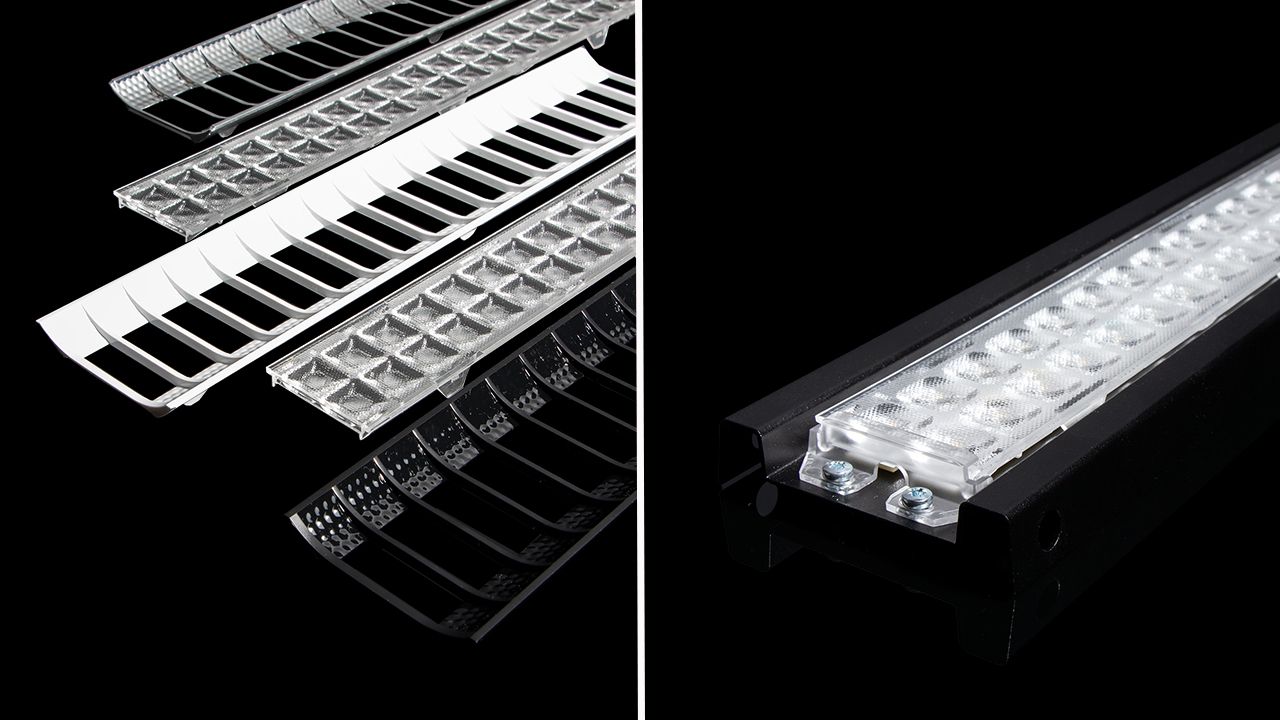 IP65 solutions with precise optical and glare control for professional beams often become complicated, costly, or inefficient. Gaps between injection-molded lenses are difficult to seal, which is why manufacturers typically add a separate glass cover – increasing both cost and complexity, or forcing the creation of a separate product line.