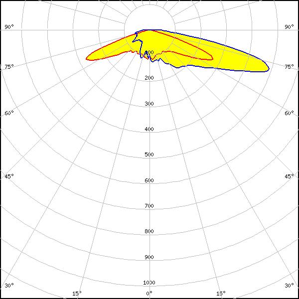 Wide IESNA Type IV beam with forward-throw beam for wide area lighting like car parks