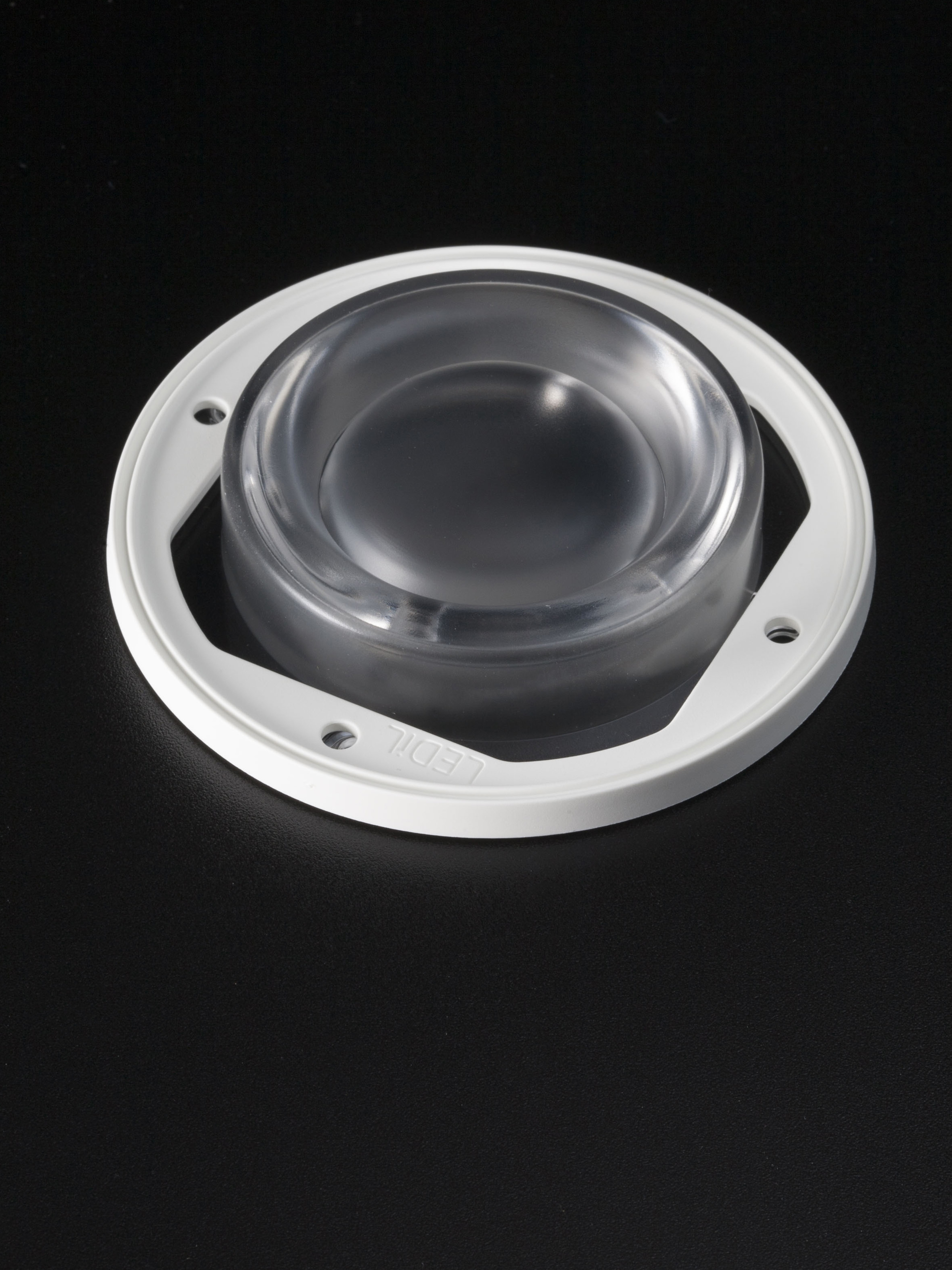 Print~75° high bay beam for warehouse and outdoor lighting. Compatible with up to 30 mm LES size COBs. Variant with white frame.